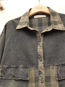 구제체크배색데님남방