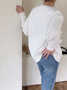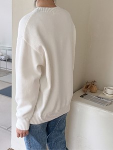 오버사이즈핏의 라운드넥 니트입니다.