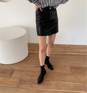 은은한 광택이 멋스러운 레더미니스커트입니다.