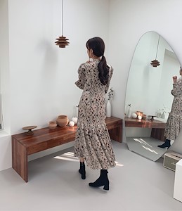 플라워패턴의 반하이넥 롱원피스입니다.