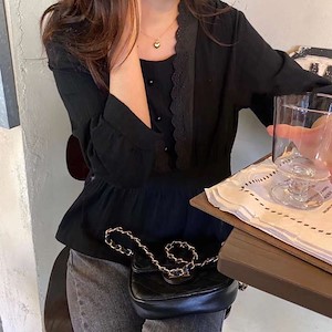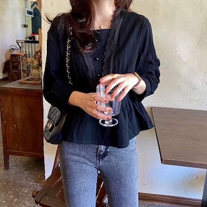 蕾丝纽扣上衣