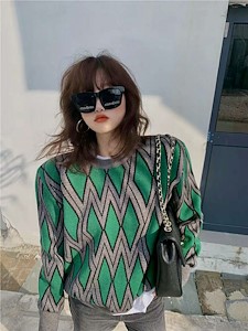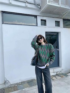 四角格毛衣