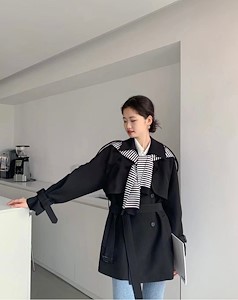 条纹纯色风衣