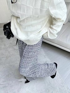 格子针织纹毛衣