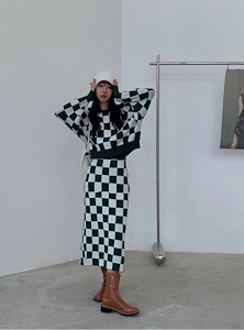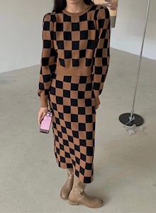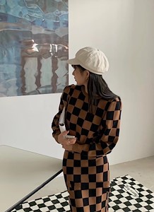 格子针织套装1