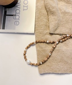 Dress room - jewelry • 나무 비즈 진주 목걸이