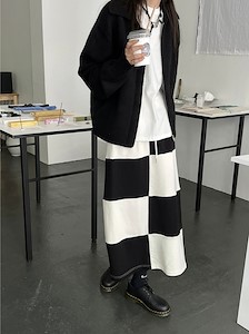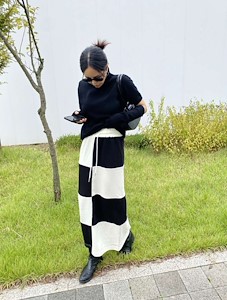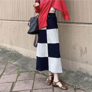 배색 체크 스커트1