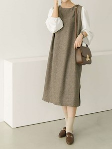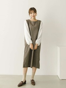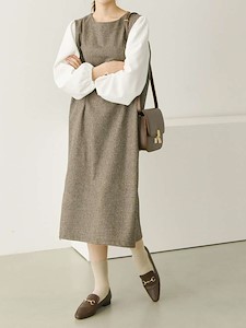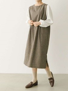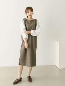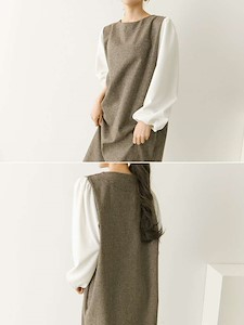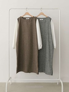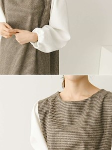 소매쪽 배색으로 포인트를 주었으며 몸판쪽 잔잔한 심플한 방모 체크원단으로 심플하면서 고급스러운 원피스