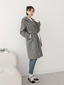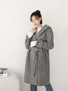 퀄리티가 있는 아이템으로 캐주얼부터 정장스타일까지 활용도가 높으며 허리끈으로 여러 스타일링이 가능한 체크 후드 울코트^^