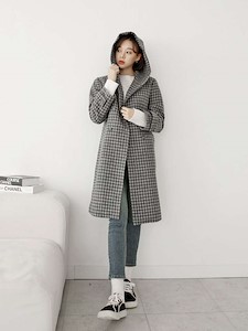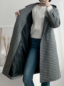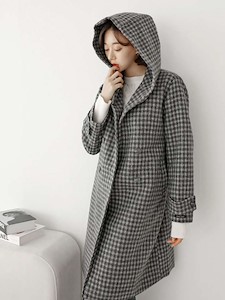 체크후드 울 더블 코트-handmade