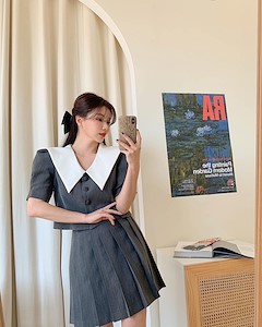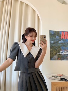 주름배색블라우스