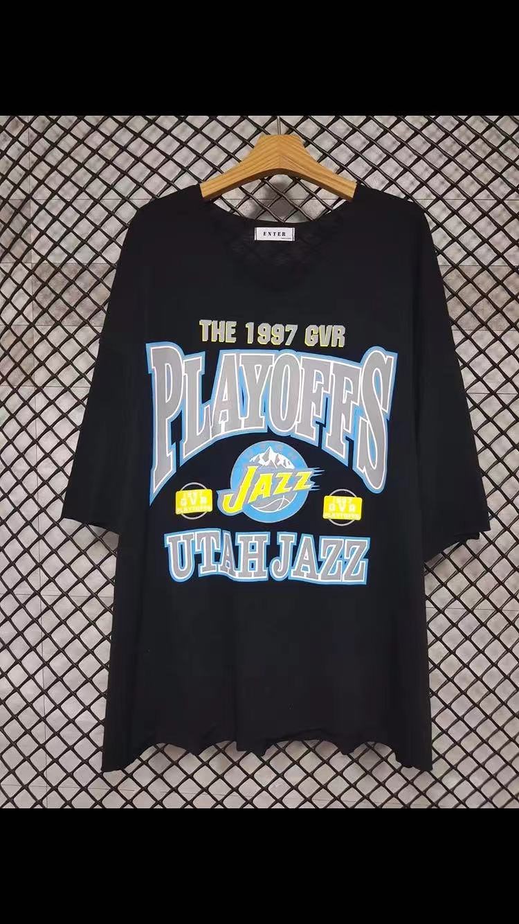 T恤 V领 大版 印花 宽松 短袖