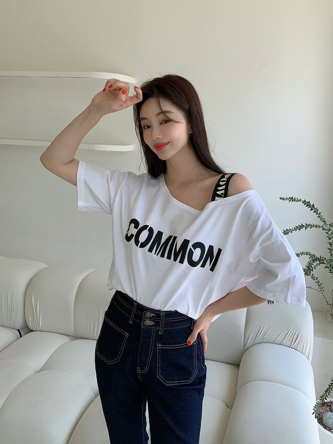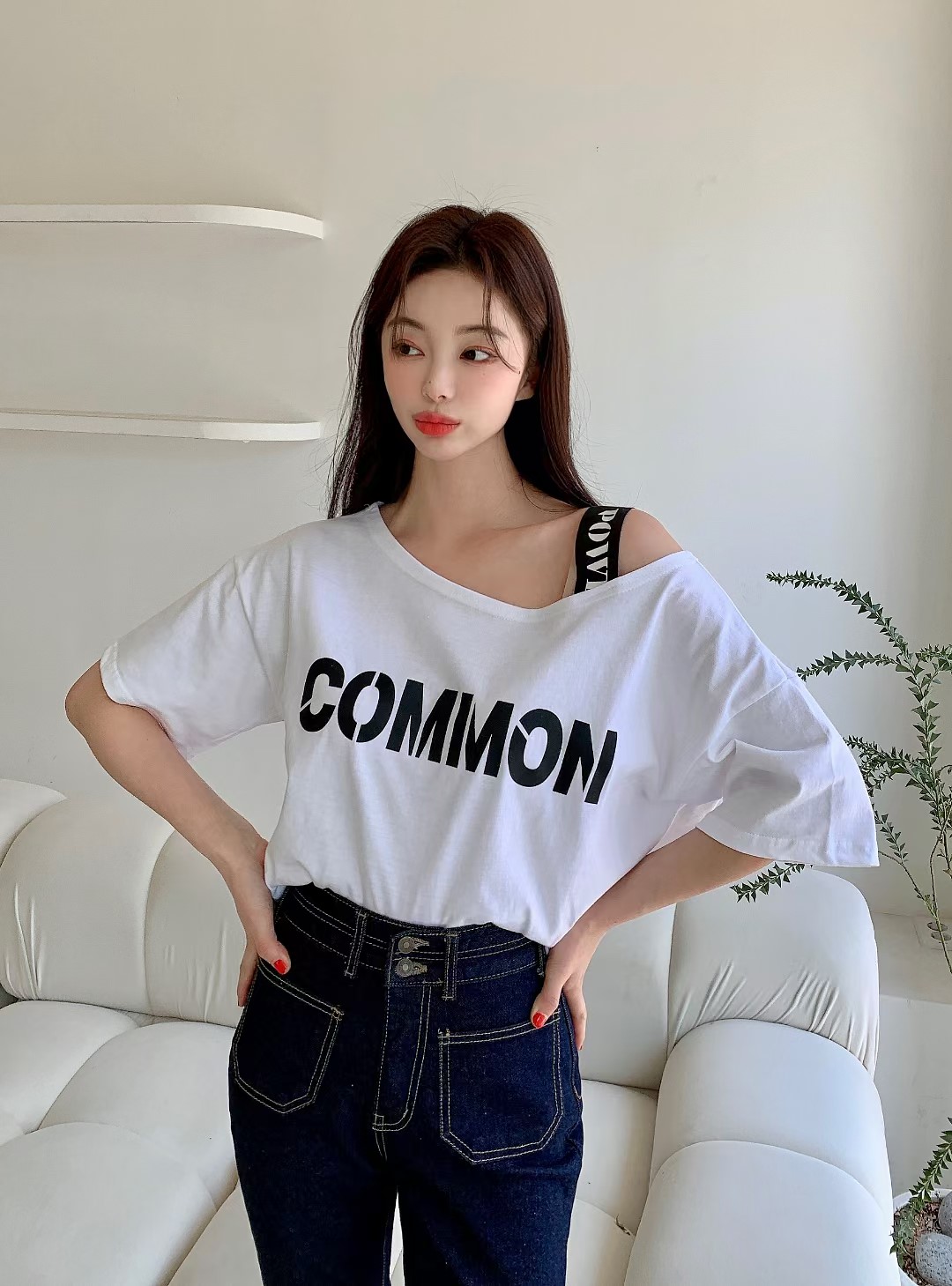 T恤 露肩设计感小众