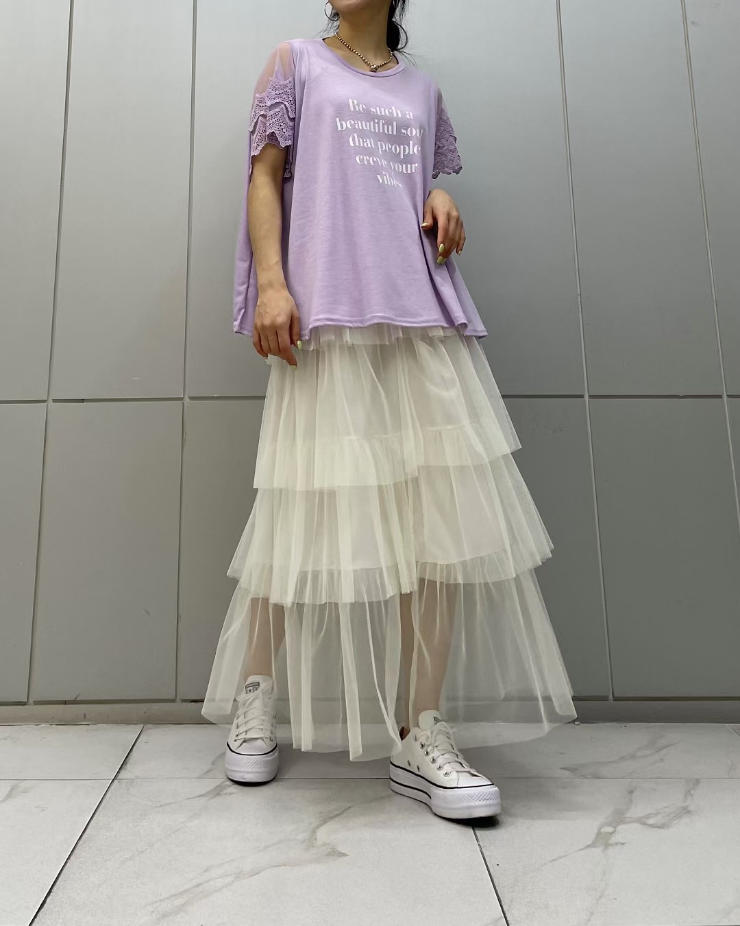 图款 蕾丝袖字母款半袖