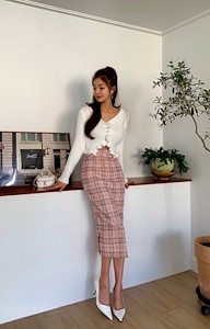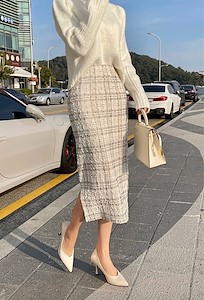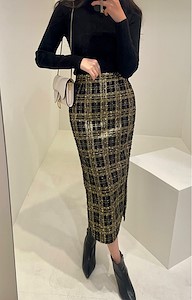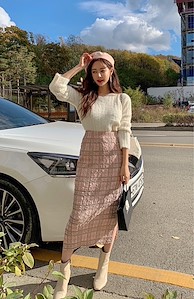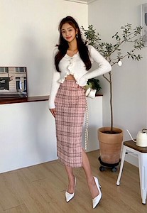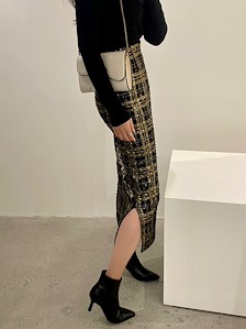 메리펄SK 3⃣️色格子松紧腰开叉半裙