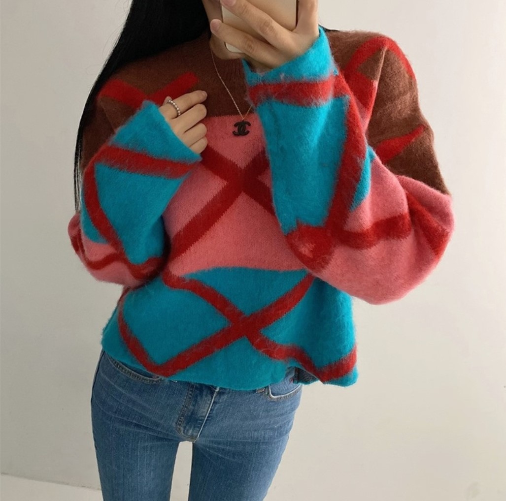 品名:단가라 배색니트 ◎※☞颜色:블루, 핑크 ◎※☞尺寸:FREE ◎※☞材质:聚酯 38%,비스코스 52%,羊毛 10% ◎※☞注意事项:只能干洗,只能手洗,不能手洗,机洗,不能使用漂白剂,不能烘干,不能熨烫,不能曲折