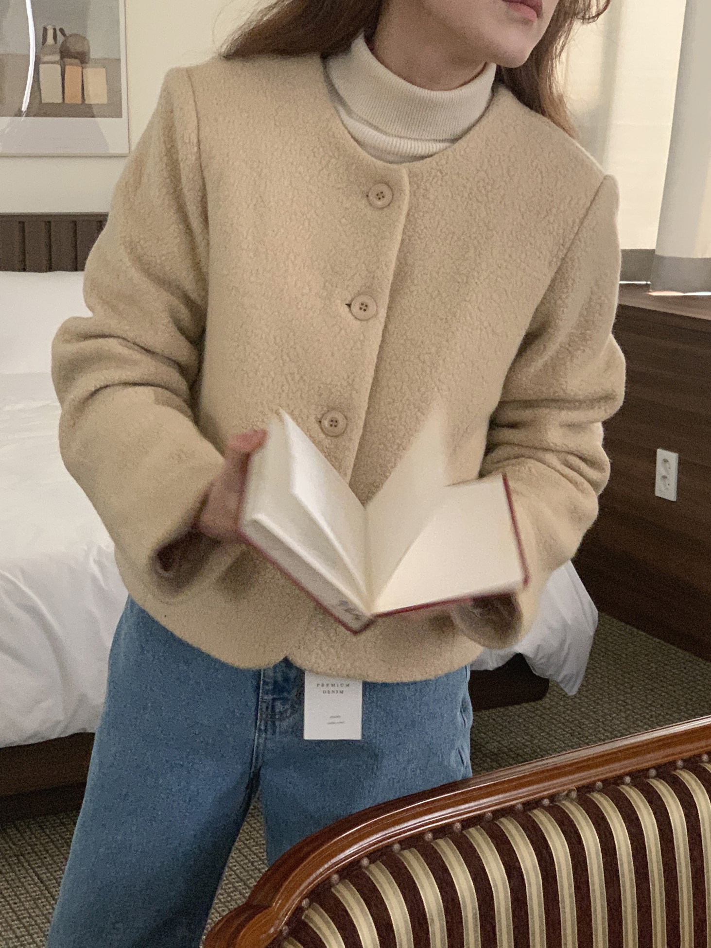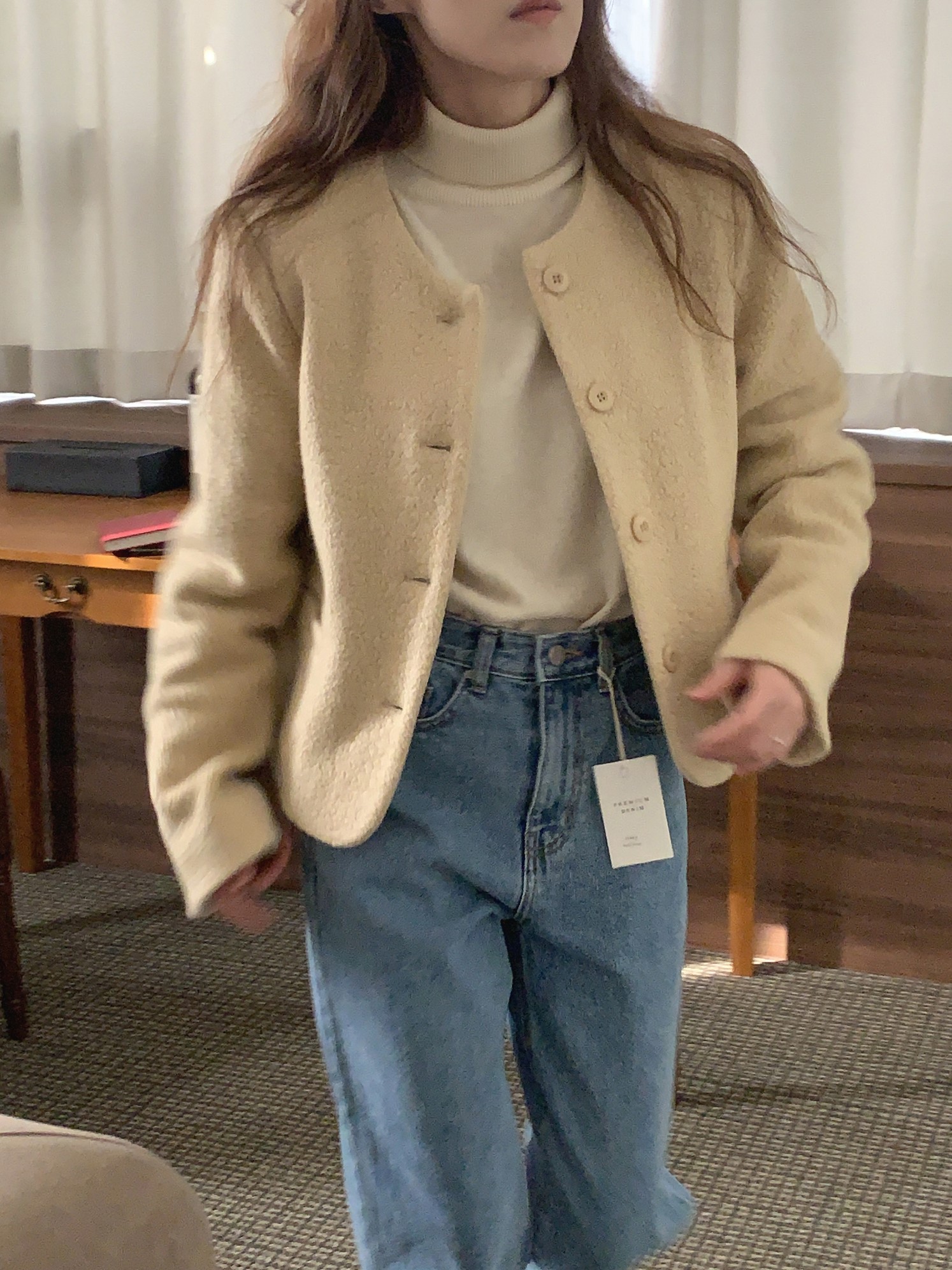 品名:알파카라운드자켓 ◎※☞颜色:버터베이지, 블랙, 아이보리 ◎※☞尺寸:FREE ◎※☞材质:尼龙 30%,羊驼毛 10%,羊毛 60% ◎※☞注意事项:只能干洗,只能手洗,不能手洗,机洗,不能使用漂白剂,不能烘干,不能熨烫,不能曲折