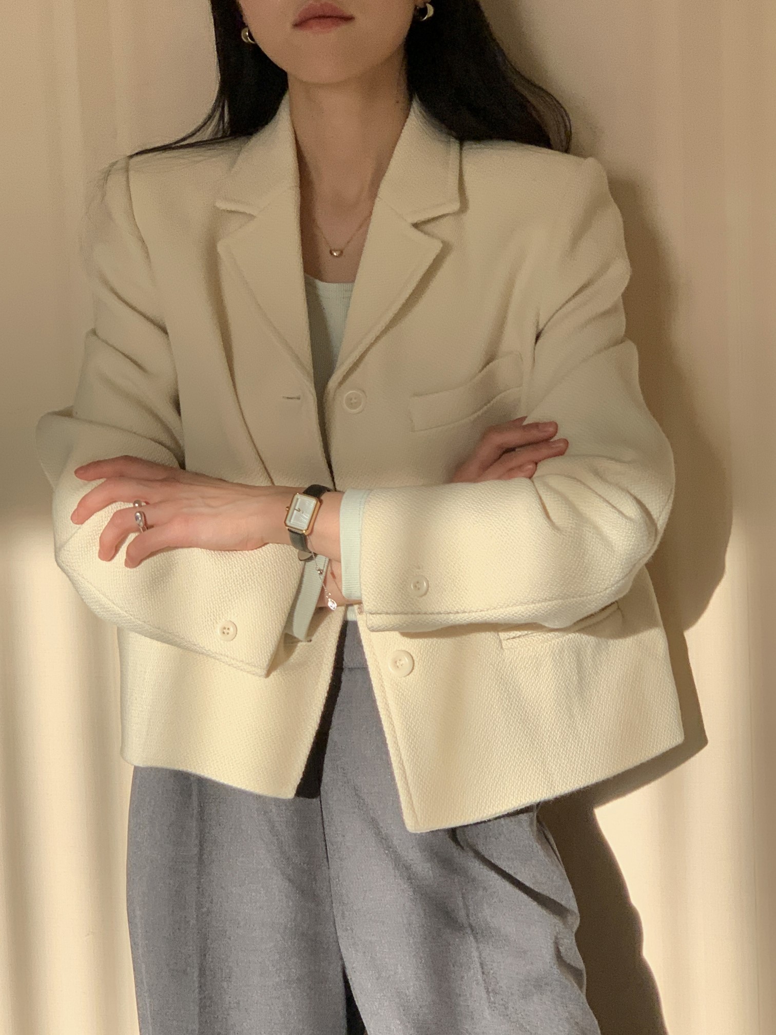 品名:메르시트위드자켓 ◎※☞颜色:블랙, 아이보리 ◎※☞尺寸:FREE ◎※☞材质:人造纤维 30%,天丝 60%,羊毛 10% ◎※☞注意事项:只能干洗,只能手洗,不能手洗,机洗,不能使用漂白剂,不能烘干,不能熨烫,不能曲折