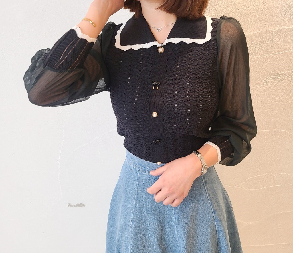 品名:스카시블라우스 ◎※☞颜色:블랙, 아이보리 ◎※☞尺寸:FREE ◎※☞材质:聚酯 60%,人造纤维 40% ◎※☞注意事项:只能干洗,只能手洗,不能手洗,机洗,不能使用漂白剂,不能烘干,不能熨烫,不能曲折