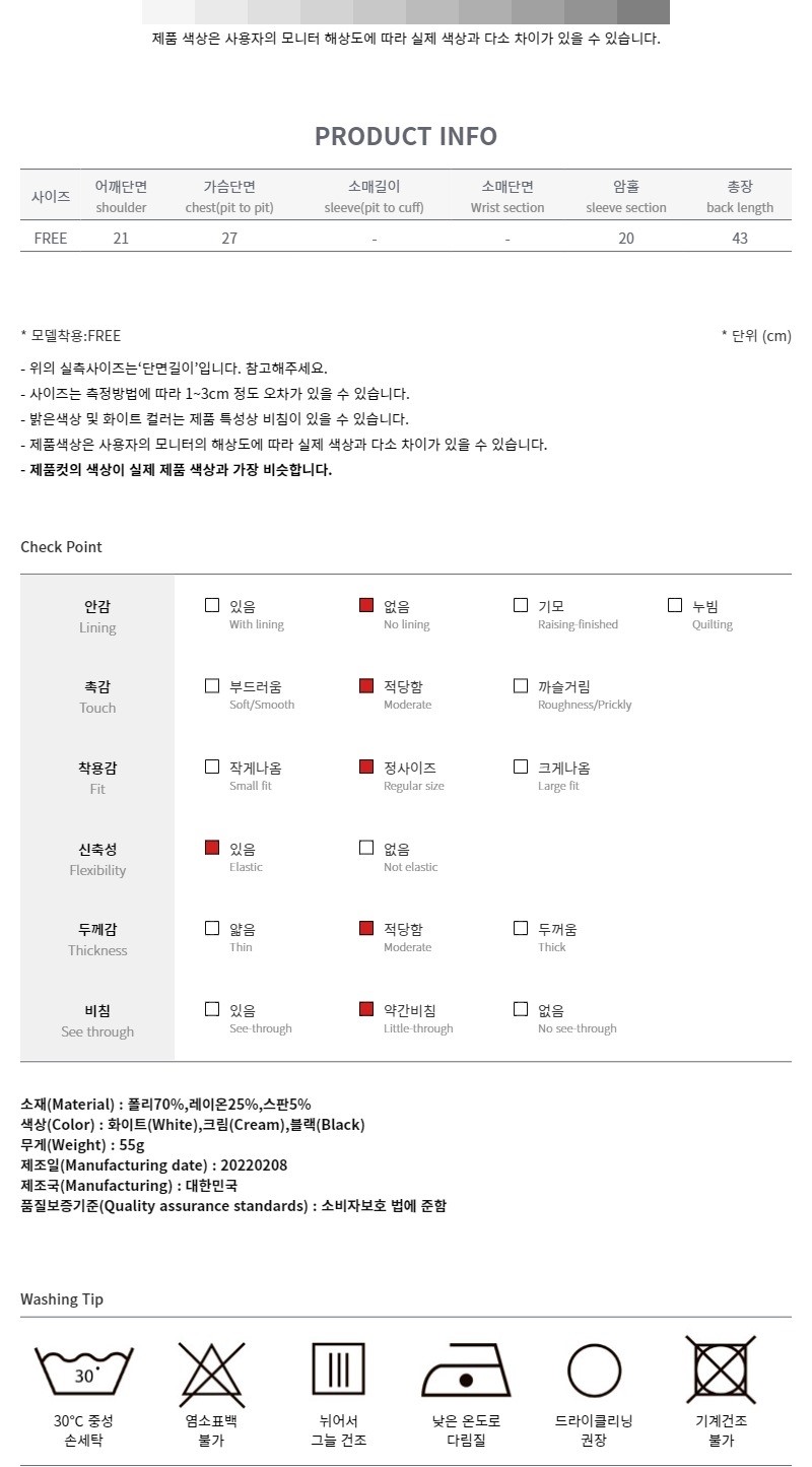 品名:纯色百搭紧身吊带 ◎※☞颜色:블랙, 아이보리 ◎※☞尺寸:FREE ◎※☞材质:弹力 5%,聚酯 70%,人造纤维 25% ◎※☞注意事项:只能干洗,只能手洗,不能手洗,机洗,不能使用漂白剂,不能烘干,不能熨烫,不能曲折