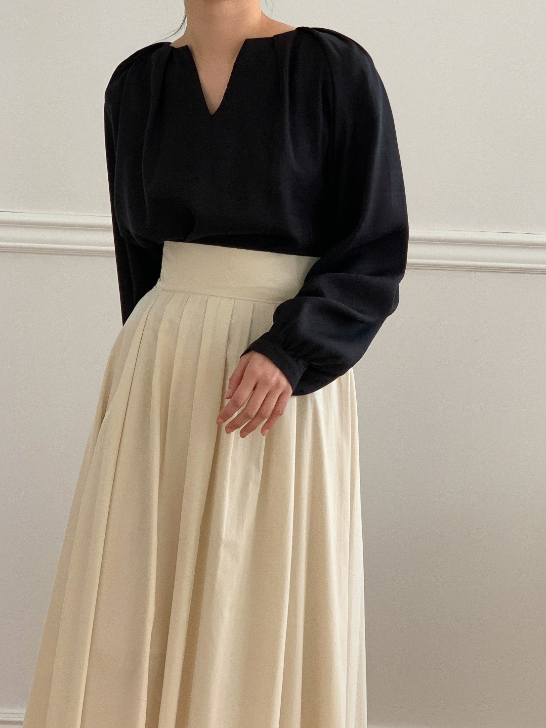 品名:23년 SS 봄신상#) 브이넥 핀턱 셔링 블라우스 (실키한 소재) ◎※☞颜色:블랙, 아이보리 ◎※☞尺寸:FREE ◎※☞材质:聚酯 50%,人造纤维 50% ◎※☞注意事项:只能干洗,只能手洗,不能手洗,机洗,不能使用漂白剂,不能烘干,不能熨烫,不能曲折