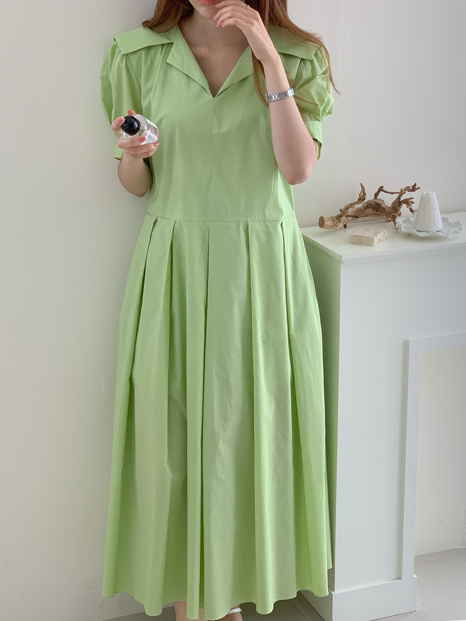 品名:NEW22 SUMMER#) 简约纯色海军领A字纯棉褶皱连衣裙 ◎※☞颜色:연두, 화이트 ◎※☞尺寸:FREE ◎※☞材质:纯棉 100% ◎※☞注意事项:只能干洗,只能手洗,不能手洗,机洗,不能使用漂白剂,不能烘干,不能熨烫,不能曲折