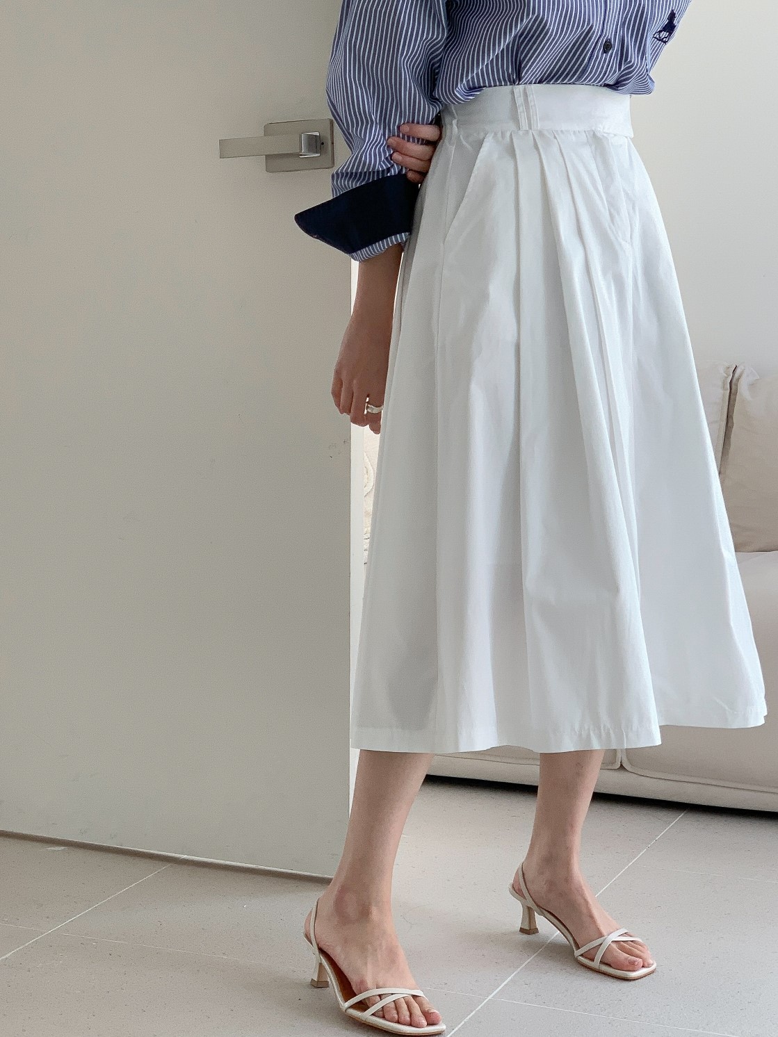 品名:23년 SS 봄신상#) 코튼 쓰리핀턱 미디스커트 ◎※☞颜色:블랙, 아이보리 ◎※☞尺寸:FREE ◎※☞材质:纯棉 100% ◎※☞注意事项:只能干洗,只能手洗,不能手洗,机洗,不能使用漂白剂,不能烘干,不能熨烫,不能曲折