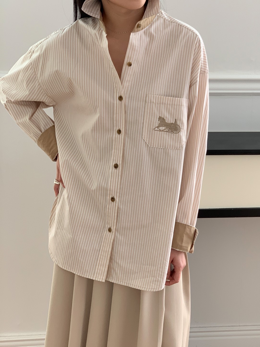 品名:23년 SS 봄신상#) 스트라이프 마차자수 오버핏셔츠 ◎※☞颜色:네이비, 베이지 ◎※☞尺寸:FREE ◎※☞材质:纯棉 100% ◎※☞注意事项:只能干洗,只能手洗,不能手洗,机洗,不能使用漂白剂,不能烘干,不能熨烫,不能曲折