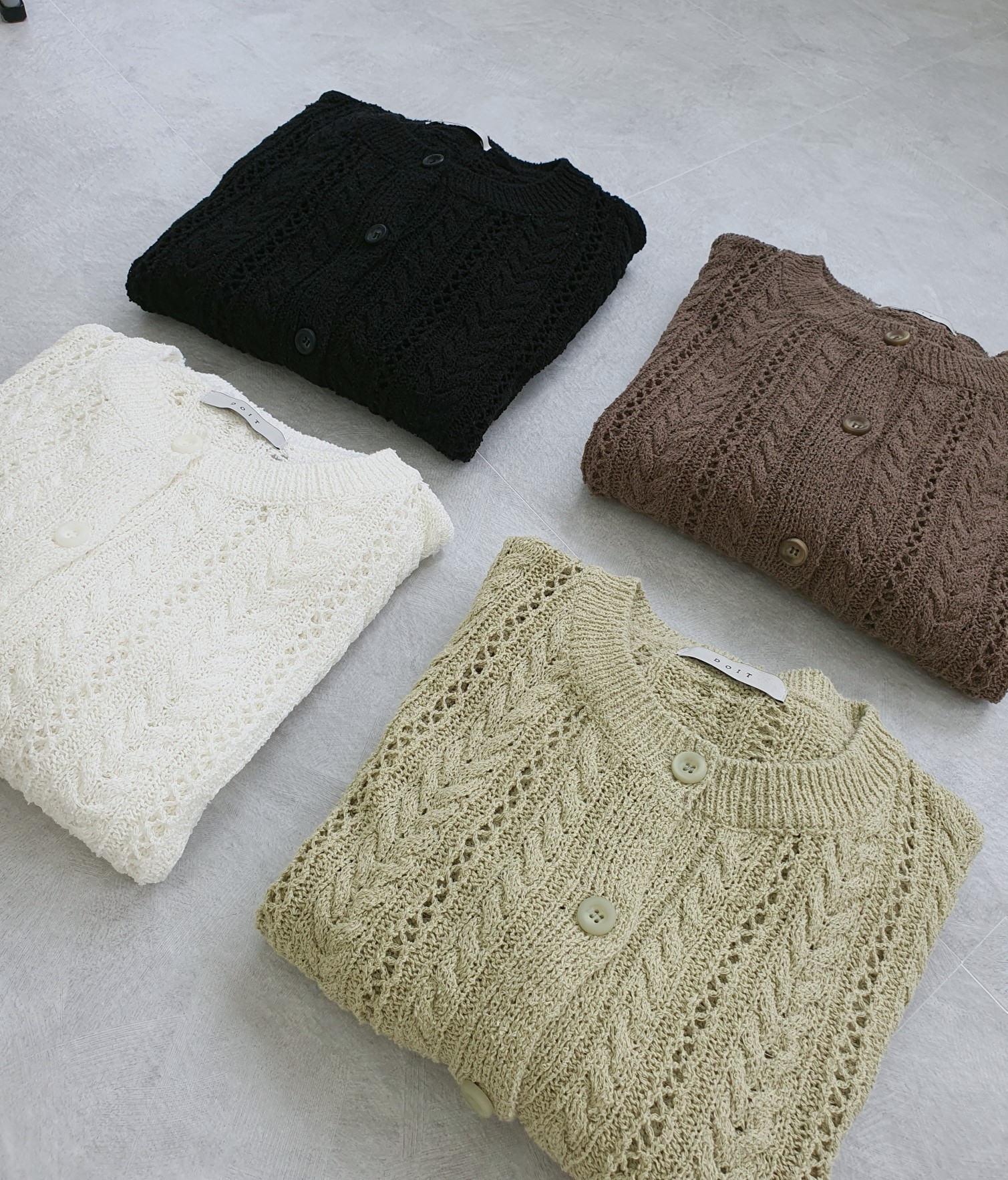 品名:이프가디건 ◎※☞颜色:브라운, 블랙, 아이보리, 연그린 ◎※☞尺寸:FREE ◎※☞材质:纯棉 100% ◎※☞注意事项:只能干洗,只能手洗,不能手洗,机洗,不能使用漂白剂,不能烘干,不能熨烫,不能曲折