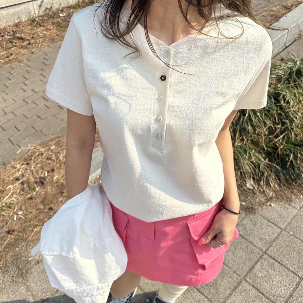 品名:단추 코튼 반팔티 ◎※☞颜色:베이지, 소라, 아이, 연카키 ◎※☞尺寸:FREE ◎※☞材质:纯棉 100% ◎※☞注意事项:只能干洗,只能手洗,不能手洗,机洗,不能使用漂白剂,不能烘干,不能熨烫,不能曲折