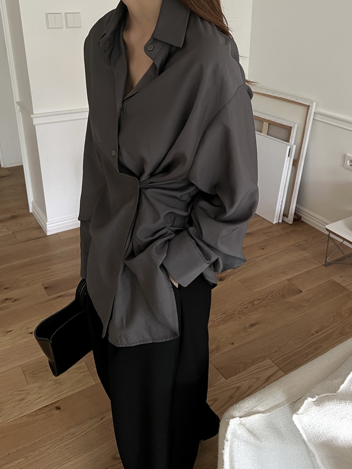 品名:简约设计宽松长袖衬衫 ◎※☞颜色:베이지, 블랙, 차콜 ◎※☞尺寸:FREE ◎※☞材质:人造纤维 92%,聚酯 8% ◎※☞注意事项:只能干洗,只能手洗,不能手洗,机洗,不能使用漂白剂,不能烘干,不能熨烫,不能曲折