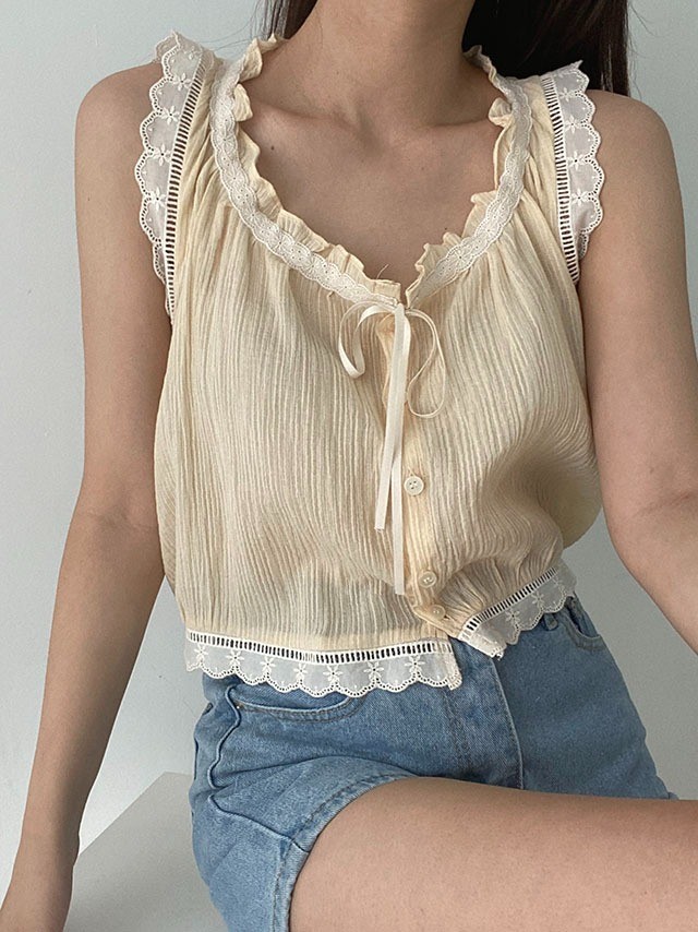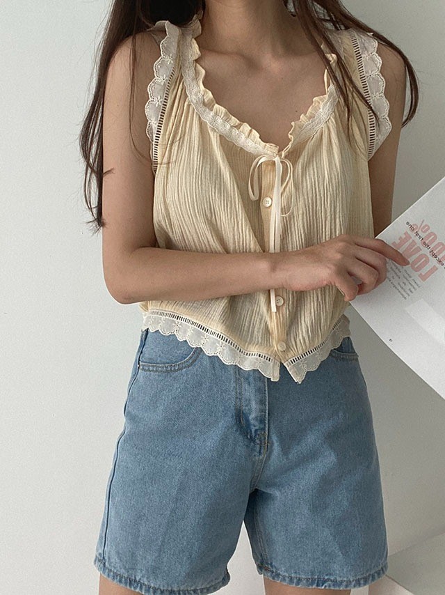 品名:이쭈BL(레이스 나시 블라우스) ◎※☞颜色:옐로우, 화이트 ◎※☞尺寸:FREE ◎※☞材质:纯棉 100% ◎※☞注意事项:只能干洗,只能手洗,不能手洗,机洗,不能使用漂白剂,不能烘干,不能熨烫,不能曲折