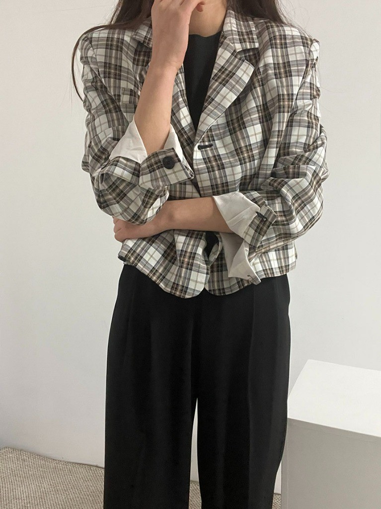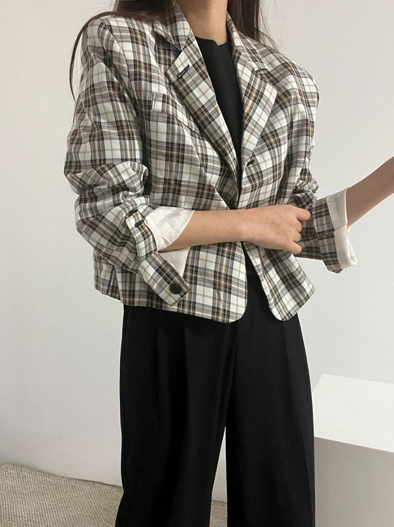 品名:코이JK(체크 숏 자켓) ◎※☞颜色:옐로우 ◎※☞尺寸:FREE ◎※☞材质:聚酯 83%,人造纤维 13%,弹力 4% ◎※☞注意事项:只能干洗,只能手洗,不能手洗,机洗,不能使用漂白剂,不能烘干,不能熨烫,不能曲折