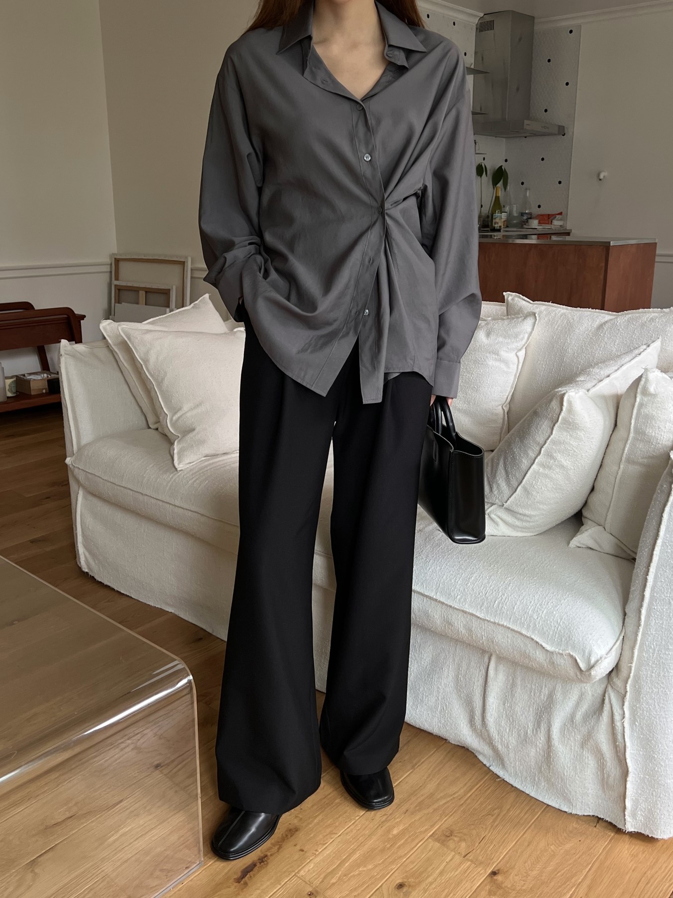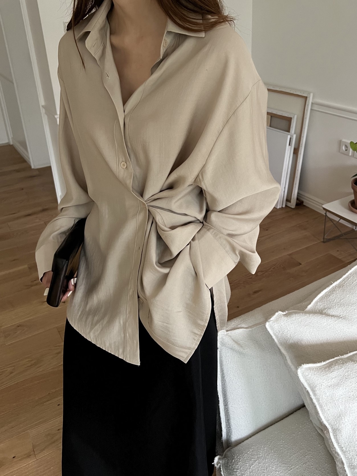 品名:简约设计宽松长袖衬衫 ◎※☞颜色:베이지, 블랙, 차콜 ◎※☞尺寸:FREE ◎※☞材质:人造纤维 92%,聚酯 8% ◎※☞注意事项:只能干洗,只能手洗,不能手洗,机洗,不能使用漂白剂,不能烘干,不能熨烫,不能曲折