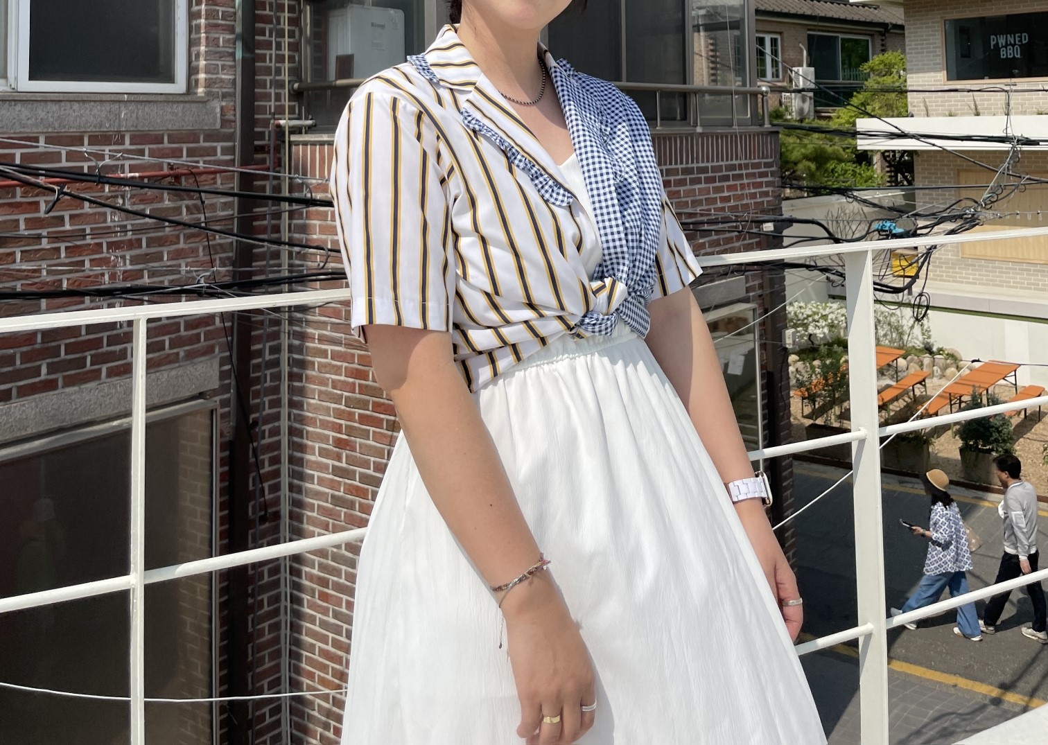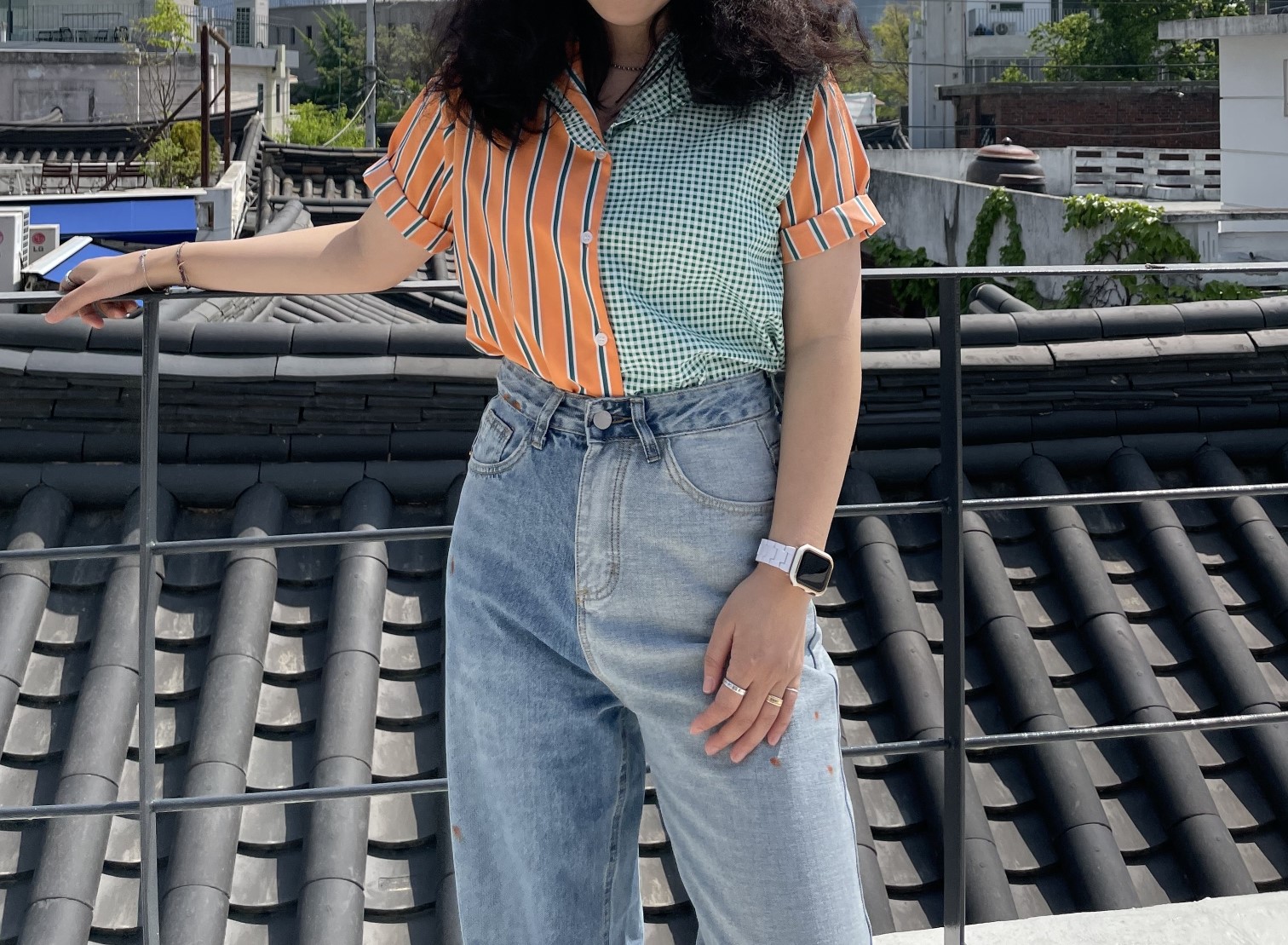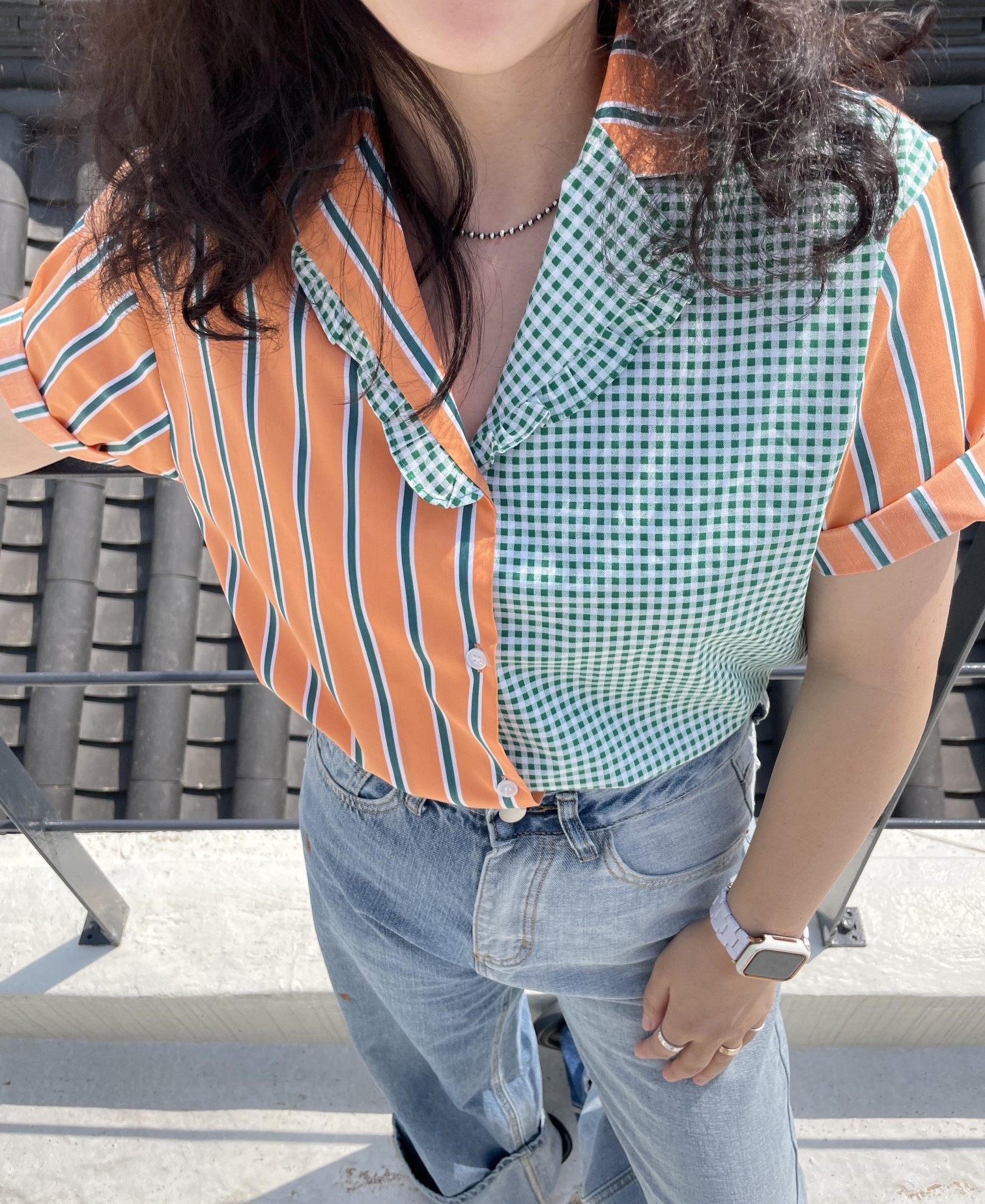 品名:케인배색남방 (프릴, 체크, 스트라이프, 셔츠, 블라우스) ◎※☞颜色:아이보리, 오렌지 ◎※☞尺寸:FREE ◎※☞材质:纯棉 100% ◎※☞注意事项:只能干洗,只能手洗,不能手洗,机洗,不能使用漂白剂,不能烘干,不能熨烫,不能曲折