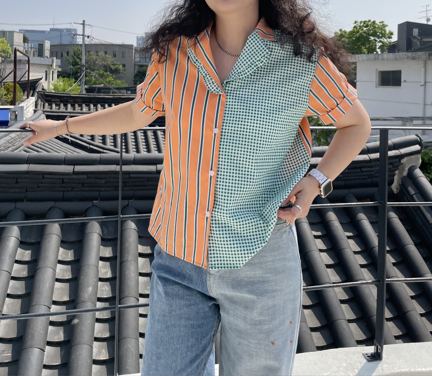 品名:케인배색남방 (프릴, 체크, 스트라이프, 셔츠, 블라우스) ◎※☞颜色:아이보리, 오렌지 ◎※☞尺寸:FREE ◎※☞材质:纯棉 100% ◎※☞注意事项:只能干洗,只能手洗,不能手洗,机洗,不能使用漂白剂,不能烘干,不能熨烫,不能曲折