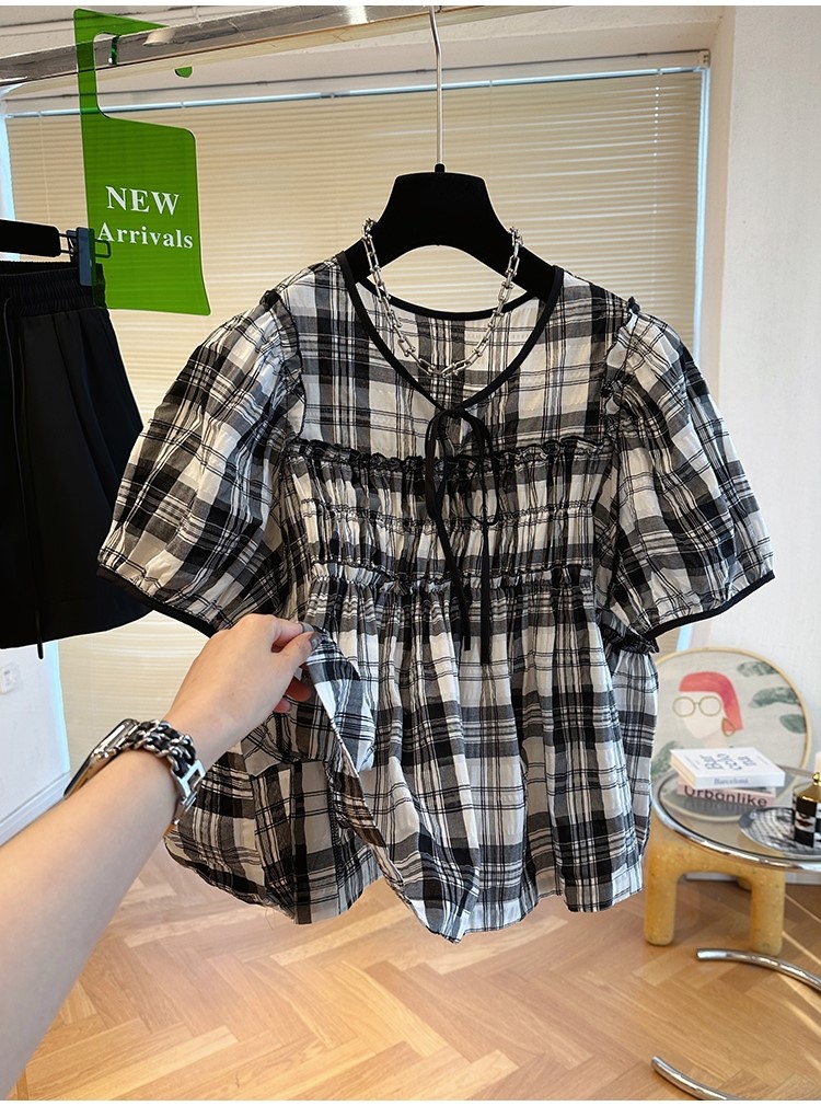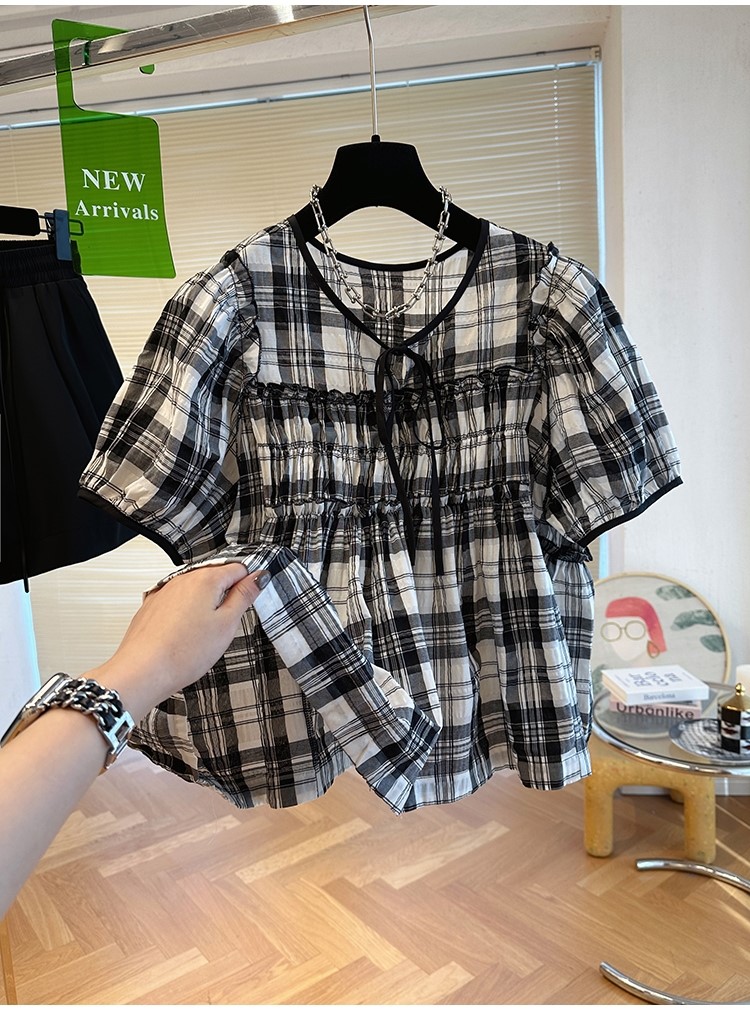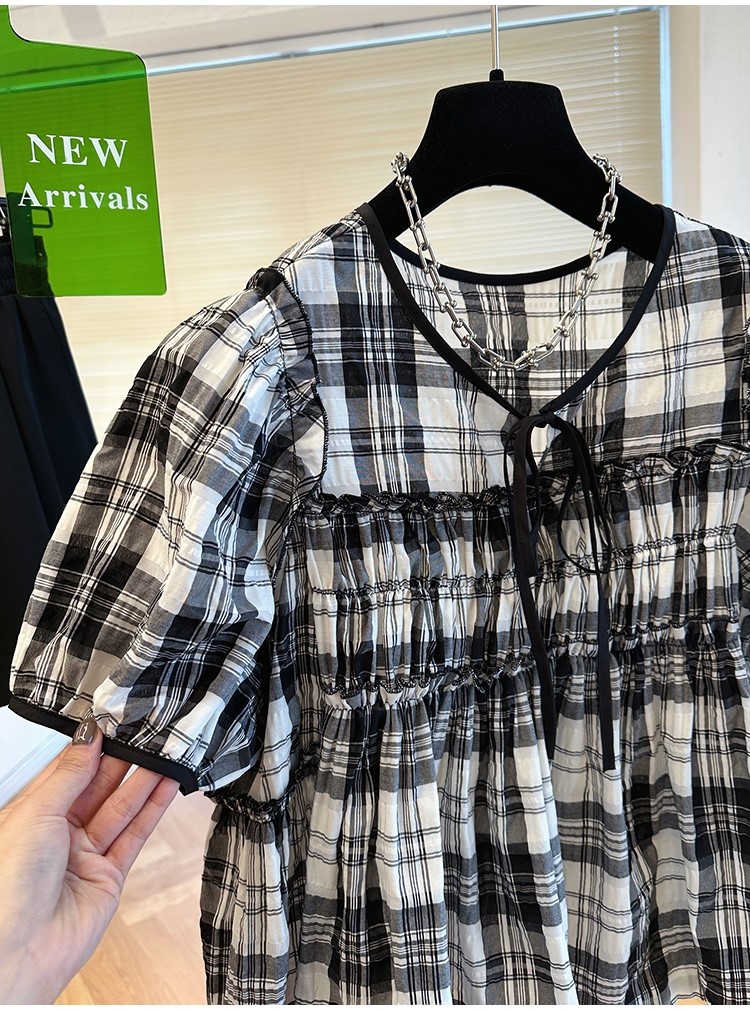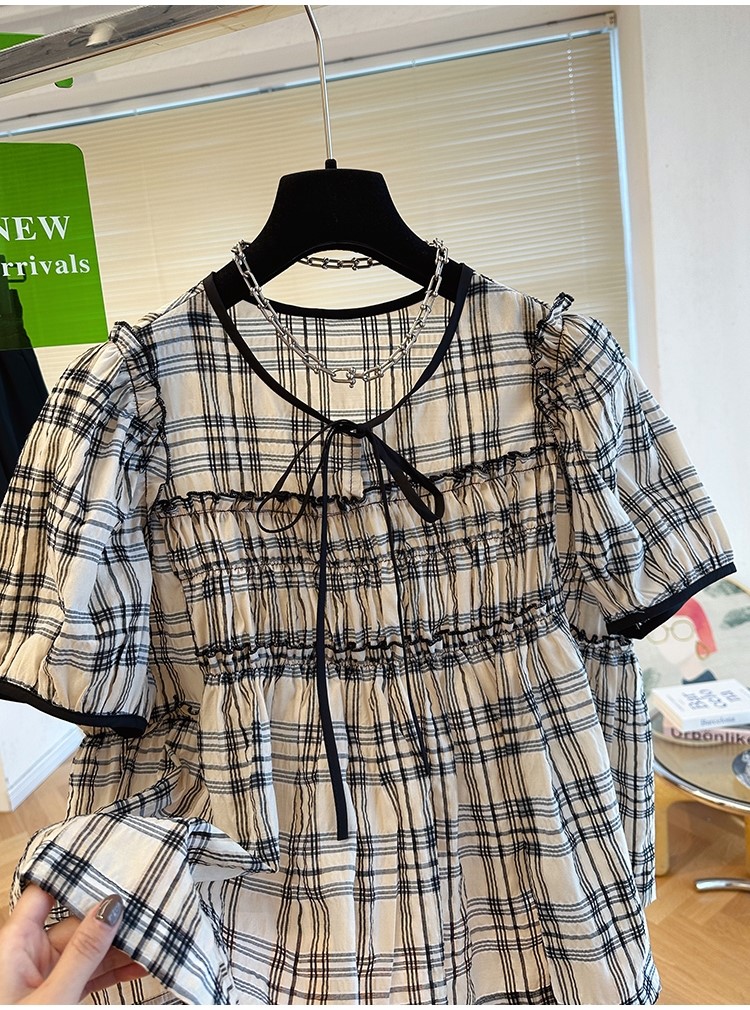 品名:체크 블라우스 ◎※☞颜色:베이지, 블랙 ◎※☞尺寸:FREE ◎※☞材质:聚酯 100% ◎※☞注意事项:只能干洗,只能手洗,不能手洗,机洗,不能使用漂白剂,不能烘干,不能熨烫,不能曲折