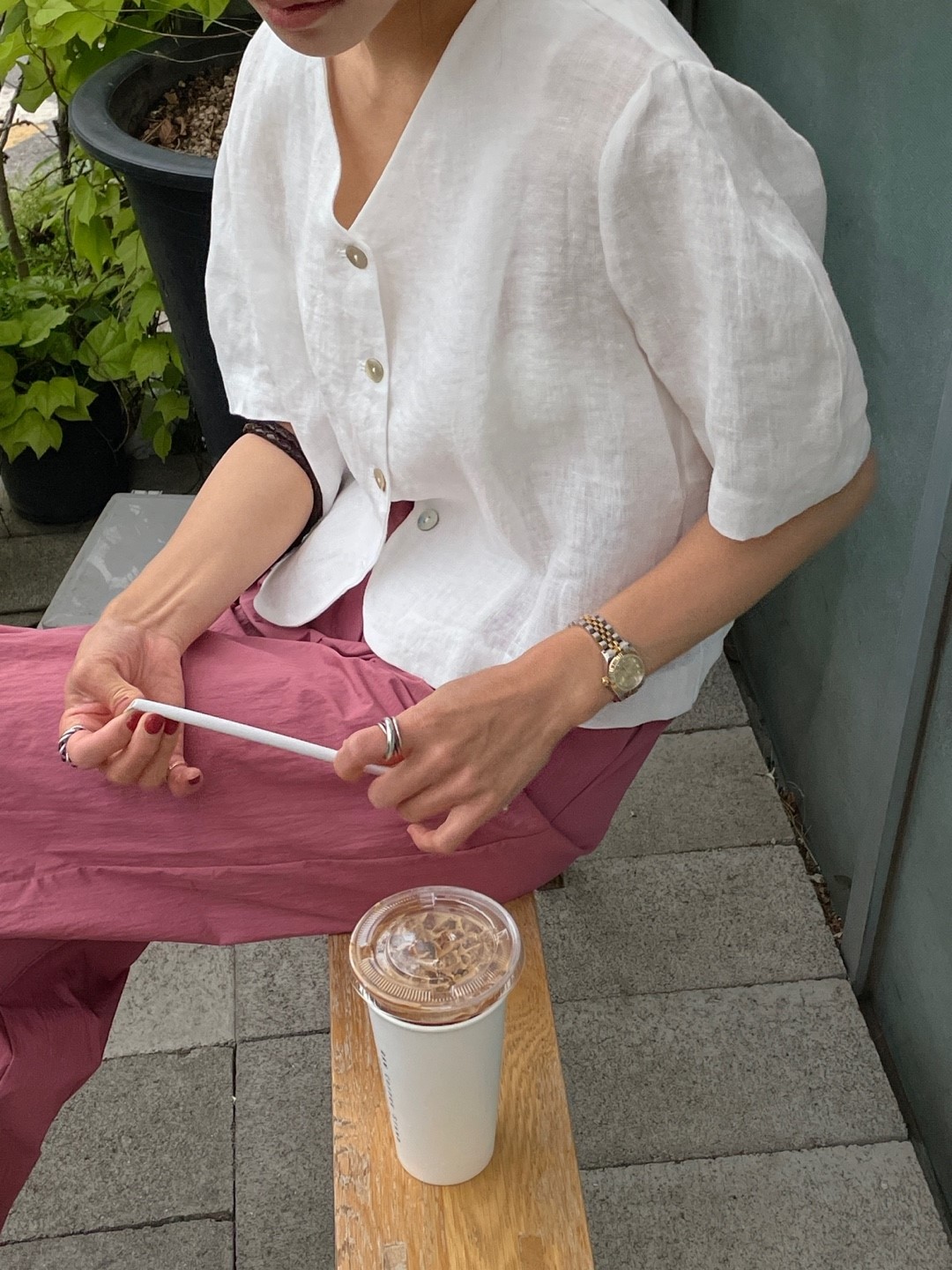 品名:린넨브이BL ◎※☞颜色:레드, 카키, 화이트 ◎※☞尺寸:FREE ◎※☞材质:亚麻 100%
