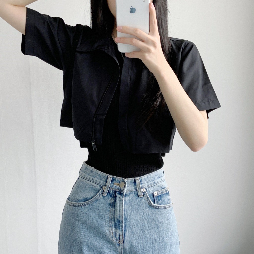 品名:베팅크롭집업JP 셔츠 지퍼 포켓 나일론 카라 집업 ◎※☞颜色:먹색, 블랙, 화이트 ◎※☞尺寸:FREE ◎※☞材质:尼龙 100%
