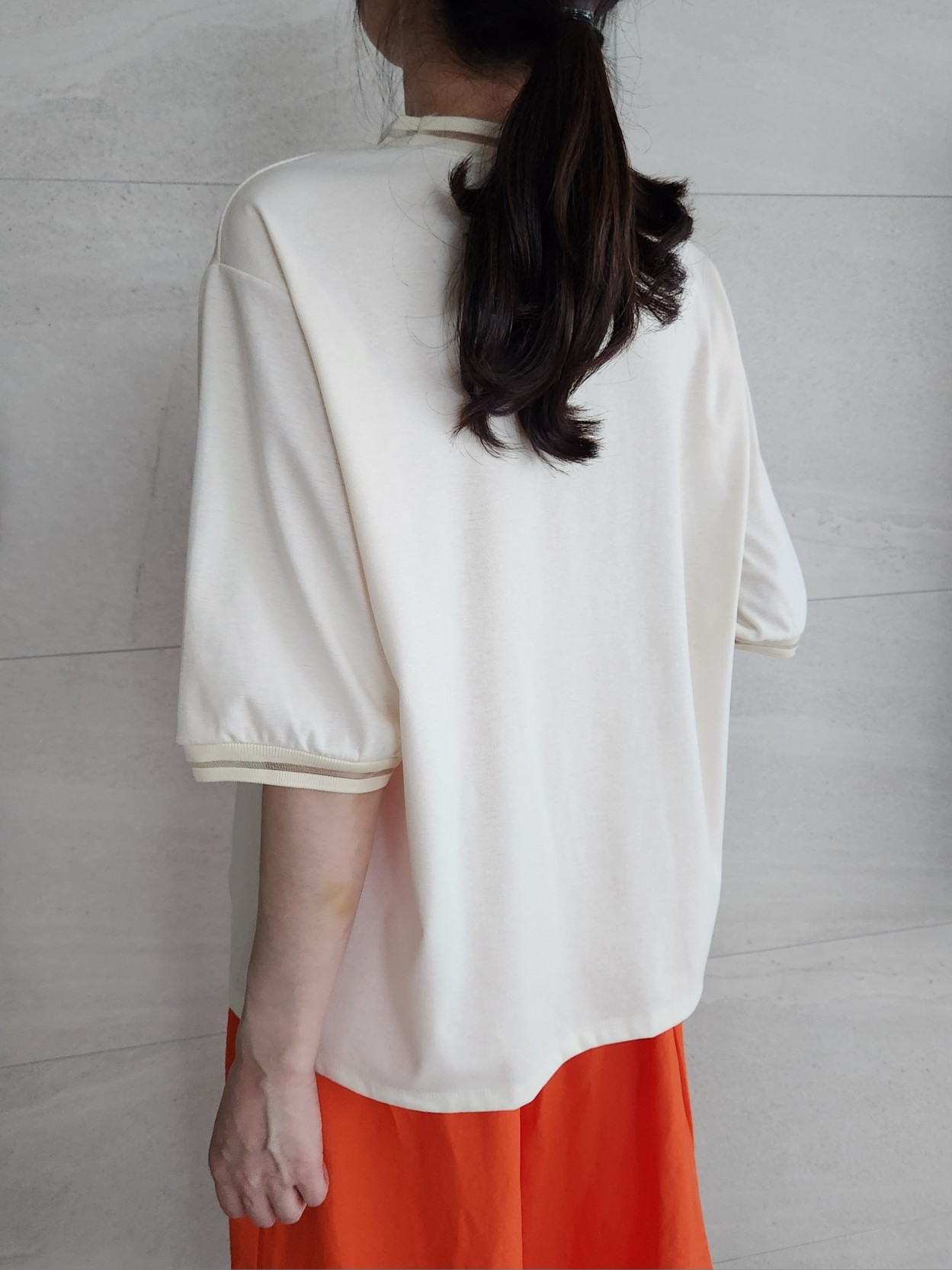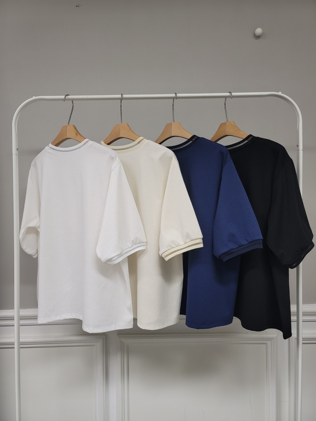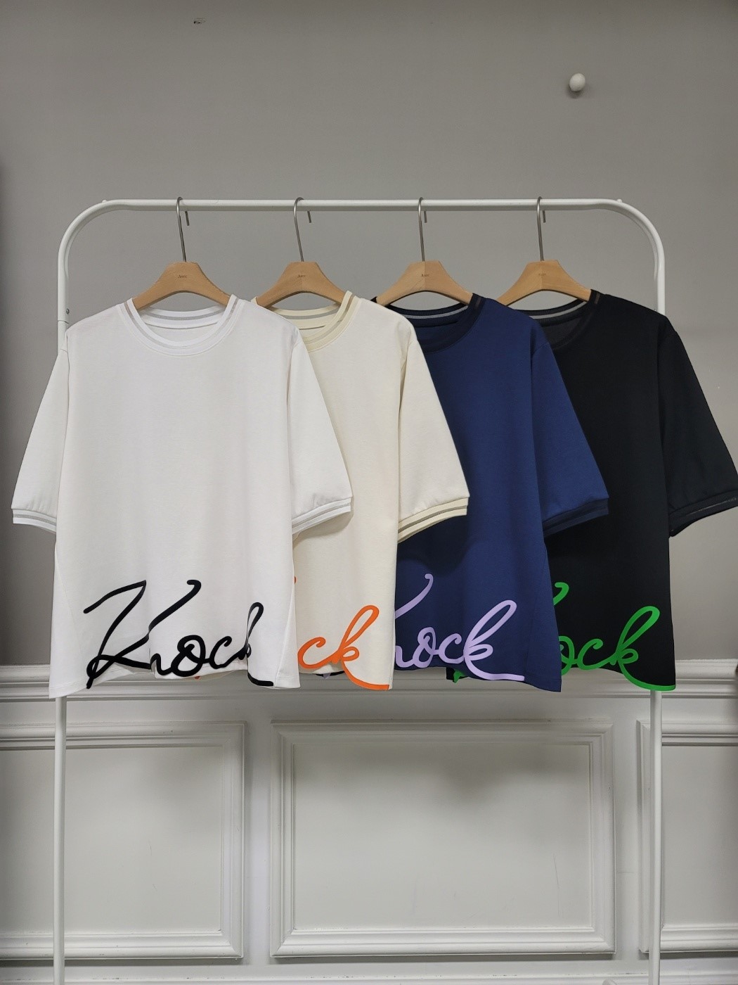 品名:노크T ◎※☞颜色:네이비, 베이지, 블랙, 아이보리 ◎※☞尺寸:FREE ◎※☞材质:스판 6%,纯棉 39%,聚酯 55% ◎※☞注意事项:只能干洗,只能手洗,不能手洗,机洗,不能使用漂白剂,不能烘干,不能熨烫,不能曲折