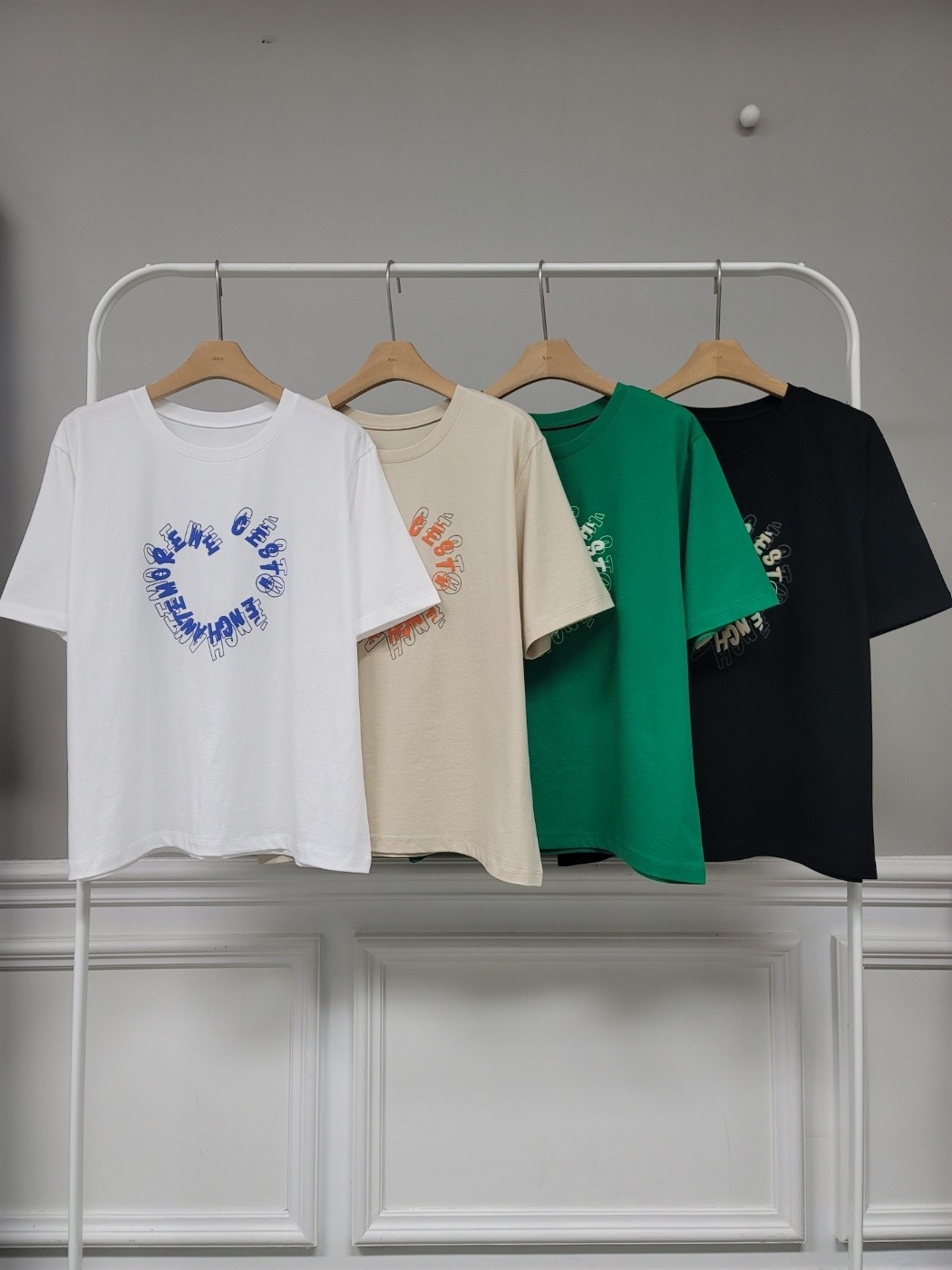 品名:루비T ◎※☞颜色:그린, 베이지, 블랙, 아이보리 ◎※☞尺寸:FREE ◎※☞材质:纯棉 100% ◎※☞注意事项:只能干洗,只能手洗,不能手洗,机洗,不能使用漂白剂,不能烘干,不能熨烫,不能曲折