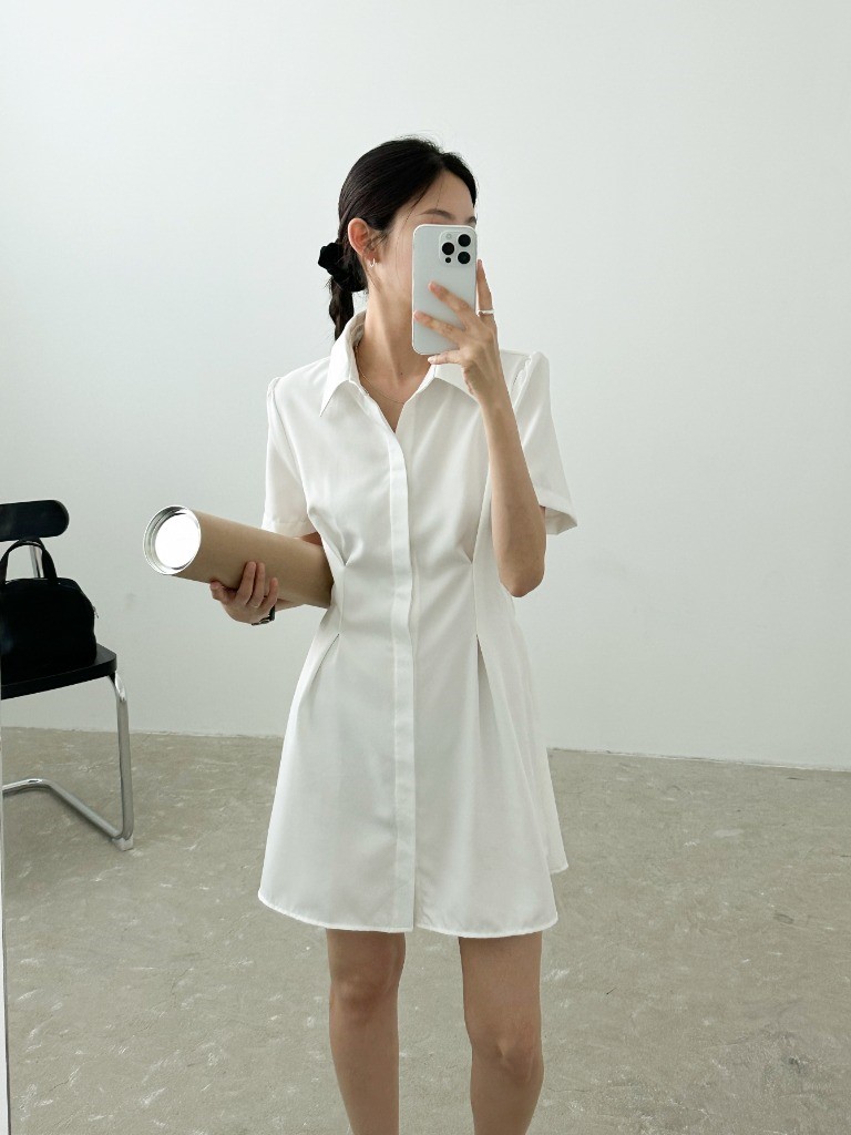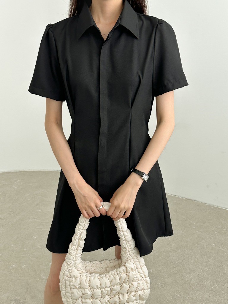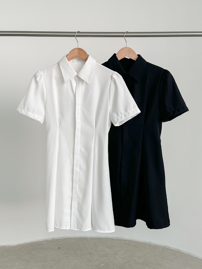 品名:히든OPS 뒷밴딩 핀턱 셔츠카라 히든 단추 미니 원피스 ◎※☞颜色:블랙, 화이트 ◎※☞尺寸:FREE ◎※☞材质:聚酯 100%