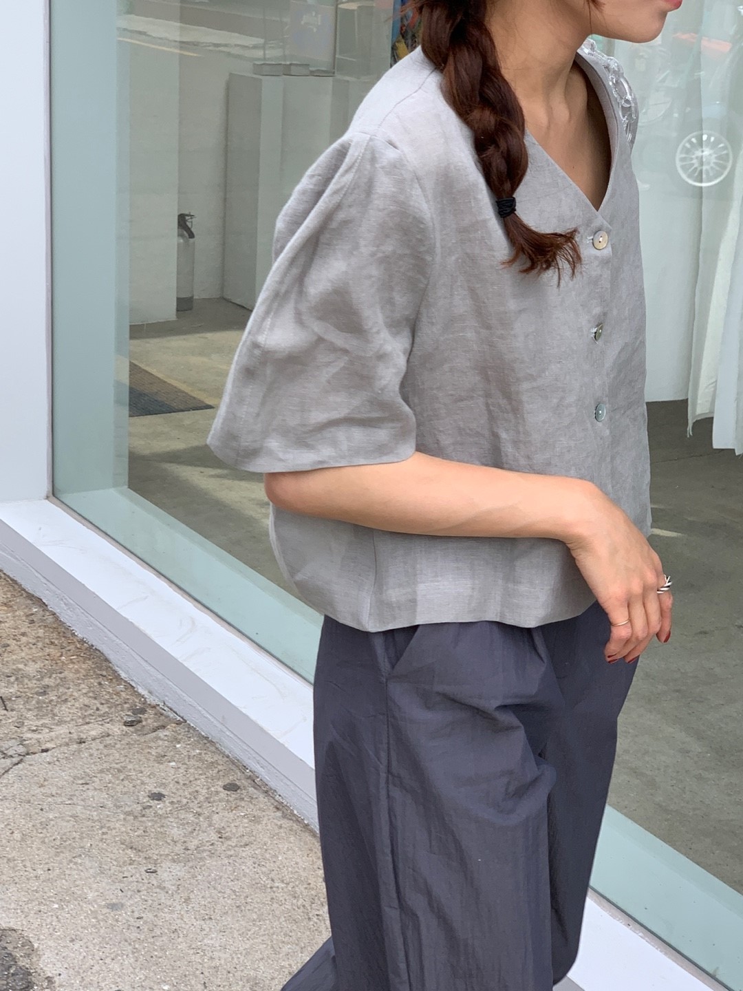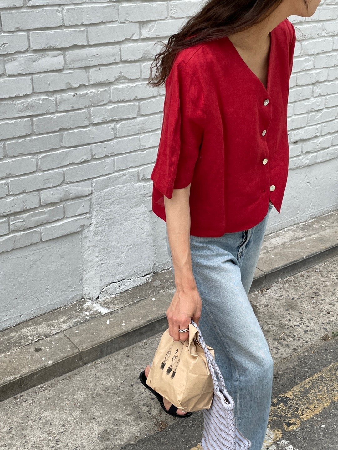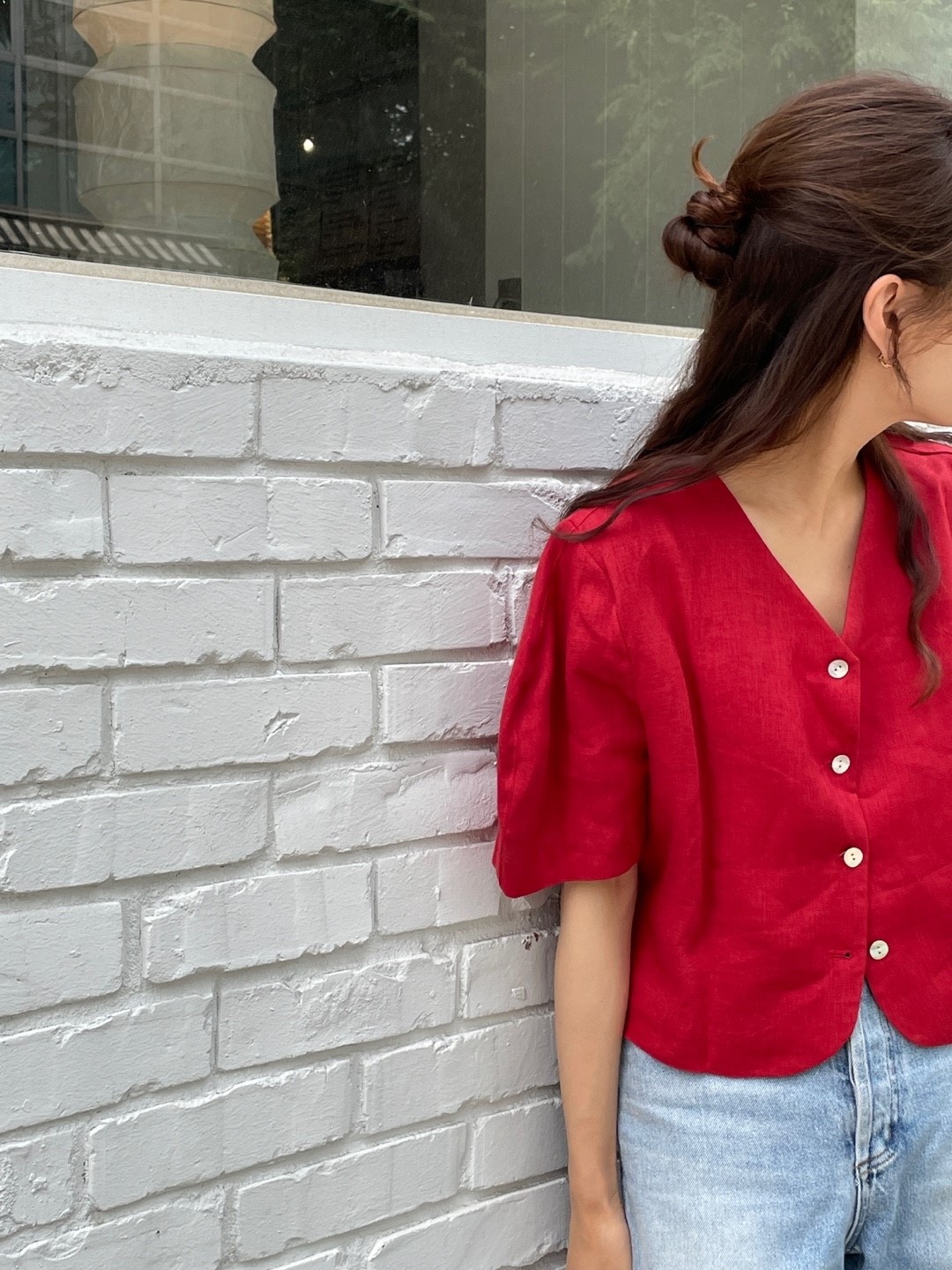 品名:린넨브이BL ◎※☞颜色:레드, 카키, 화이트 ◎※☞尺寸:FREE ◎※☞材质:亚麻 100%