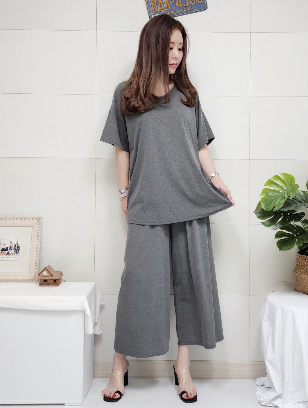 品名:쿨찰랑 V넥 실켓 박스반팔티 밴딩 통바지 세트 ◎※☞颜色:다크그레이, 블랙, 카키 ◎※☞尺寸:FREE ◎※☞材质:人造纤维 95%,聚酯 5% ◎※☞注意事项:只能干洗,只能手洗,不能手洗,机洗,不能使用漂白剂,不能烘干,不能熨烫,不能曲折