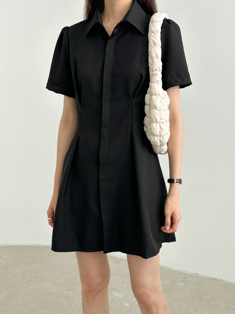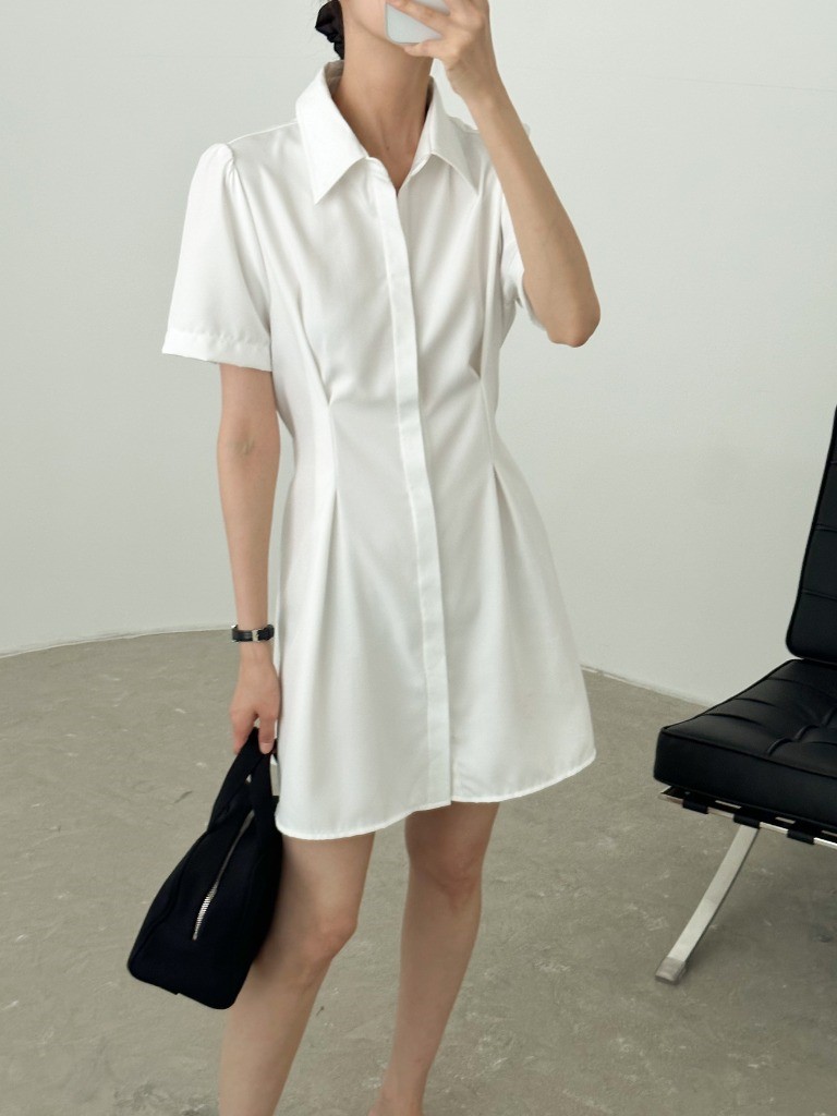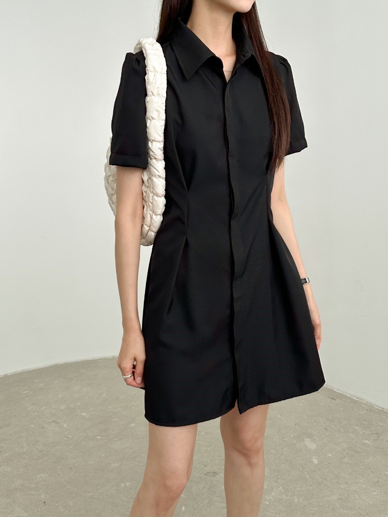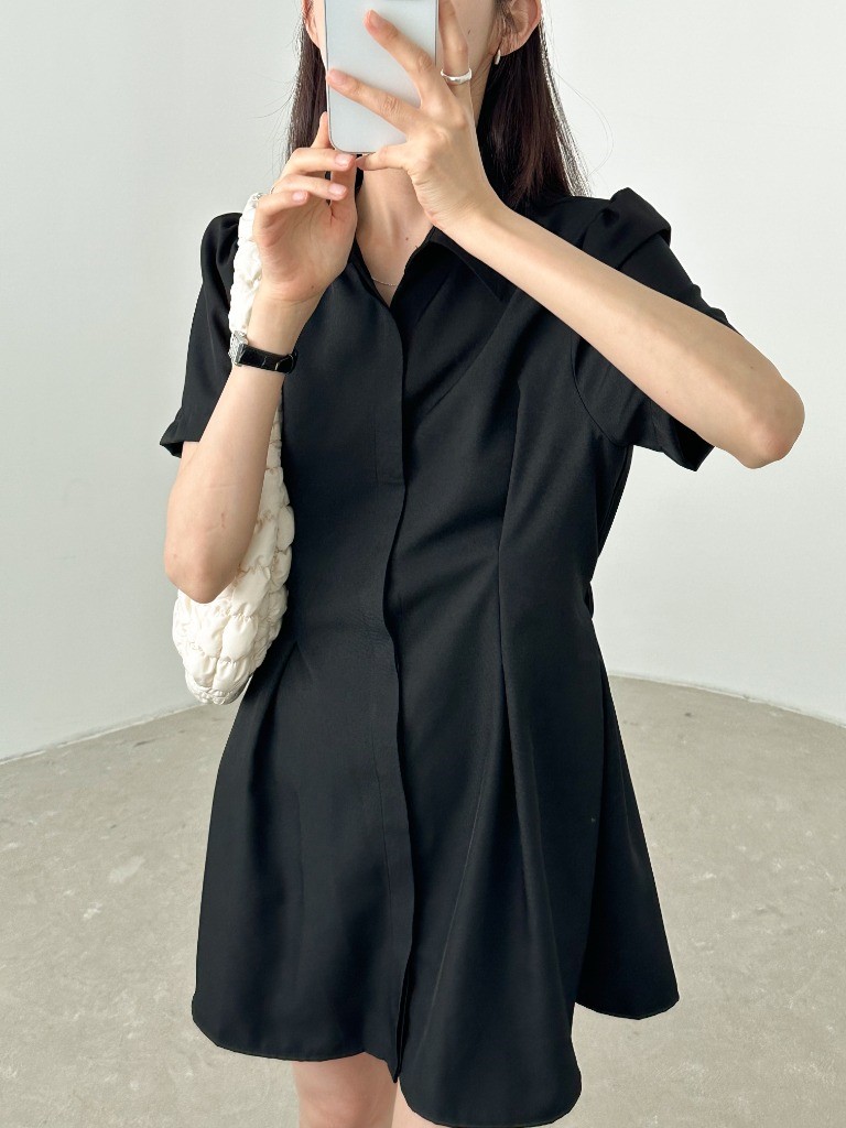 品名:히든OPS 뒷밴딩 핀턱 셔츠카라 히든 단추 미니 원피스 ◎※☞颜色:블랙, 화이트 ◎※☞尺寸:FREE ◎※☞材质:聚酯 100%