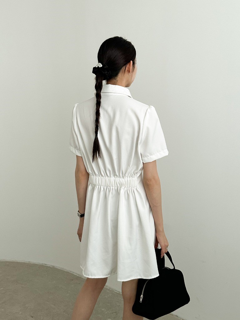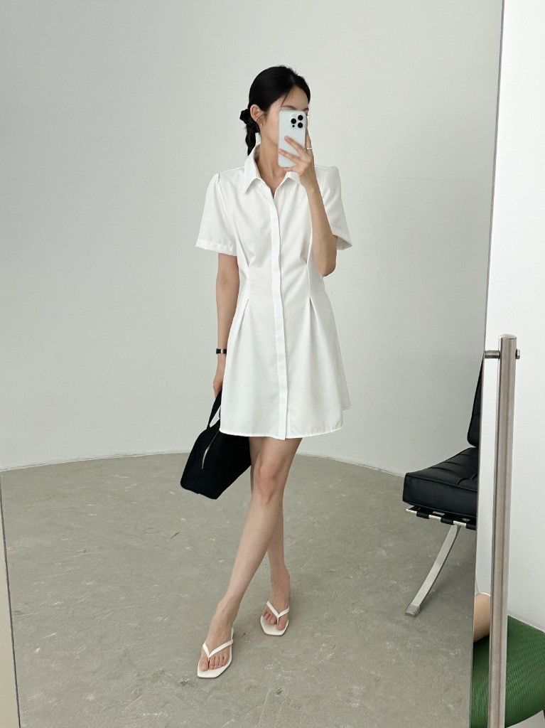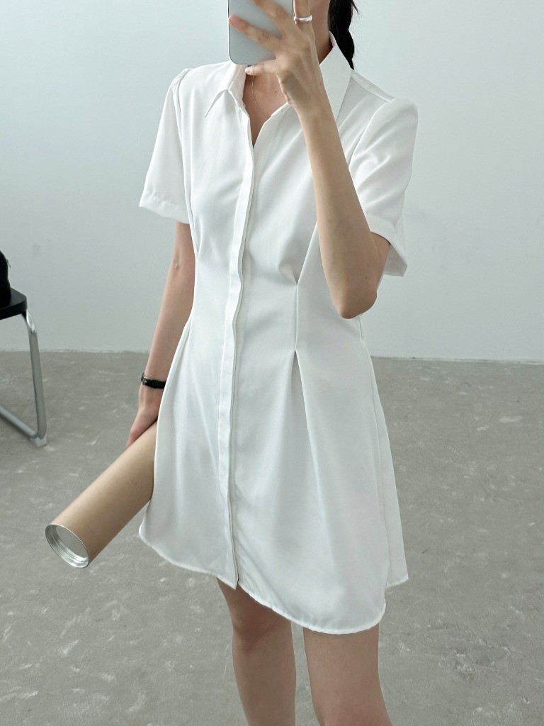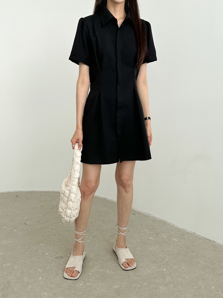 品名:히든OPS 뒷밴딩 핀턱 셔츠카라 히든 단추 미니 원피스 ◎※☞颜色:블랙, 화이트 ◎※☞尺寸:FREE ◎※☞材质:聚酯 100%