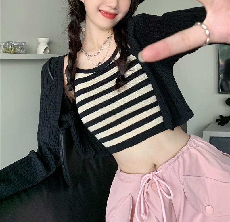 品名:꽈배기단가라 나시가디건set ◎※☞颜色:베이지, 블랙 ◎※☞尺寸:FREE ◎※☞材质:纯棉 45%,聚酯 55%