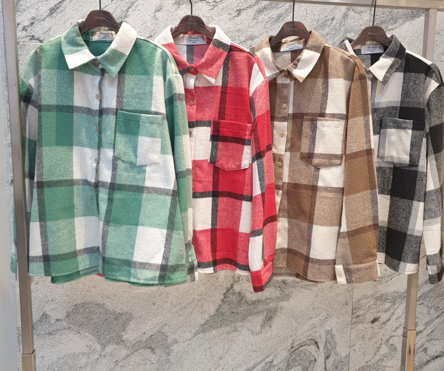 品名:체크 남방 ◎※☞颜色:민트, 브라운, 블랙, 빨강 ◎※☞尺寸:FREE ◎※☞材质:纯棉 40%,聚酯 50%,羊毛 10%
