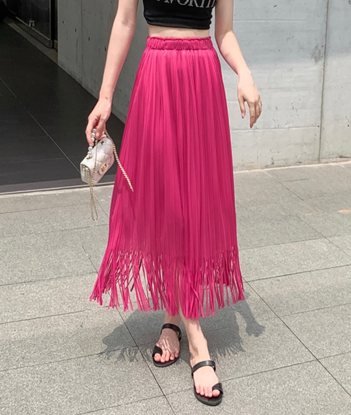 品名:플리츠수술스커트 #여성하의팬츠캐주얼섹시한시크한룩파티모임룩 ◎※☞颜色:블랙, 핑크 ◎※☞尺寸:FREE ◎※☞材质:聚酯 100%