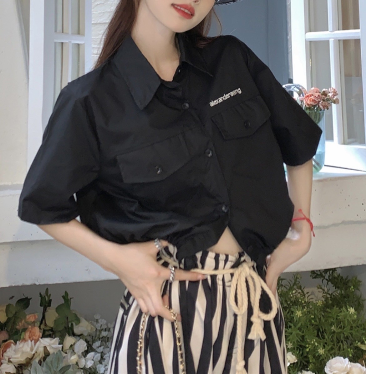 品名:앞포켓셔츠 #여성상의캐주얼시크로맨틱데일리룩 ◎※☞颜色:블랙, 아이보리 ◎※☞尺寸:FREE ◎※☞材质:纯棉 100%